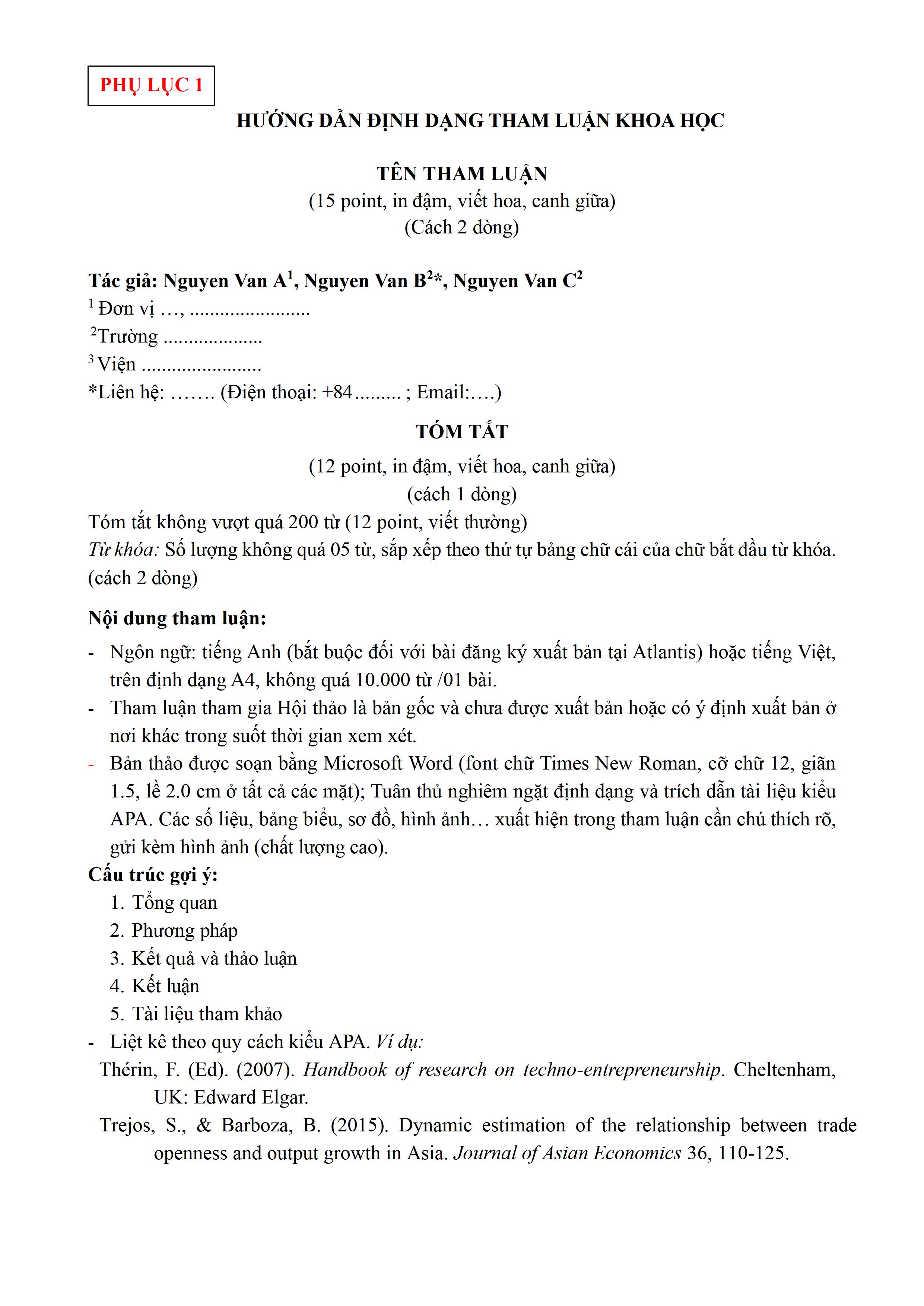 - Những công trình nghiên cứu có hàm lượng khoa học cao sẽ được công bố trong ấn phẩm độc quyền của Atlantis Press, Springer Nature.