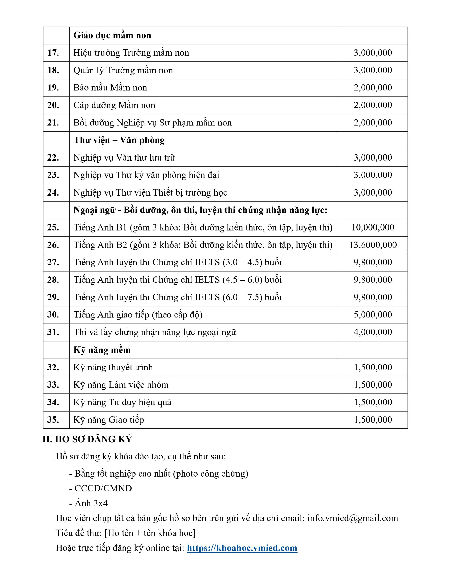 Học viên chụp tất cả bản gốc hồ sơ bên trên gửi về địa chỉ email: info.vmied@gmail.com